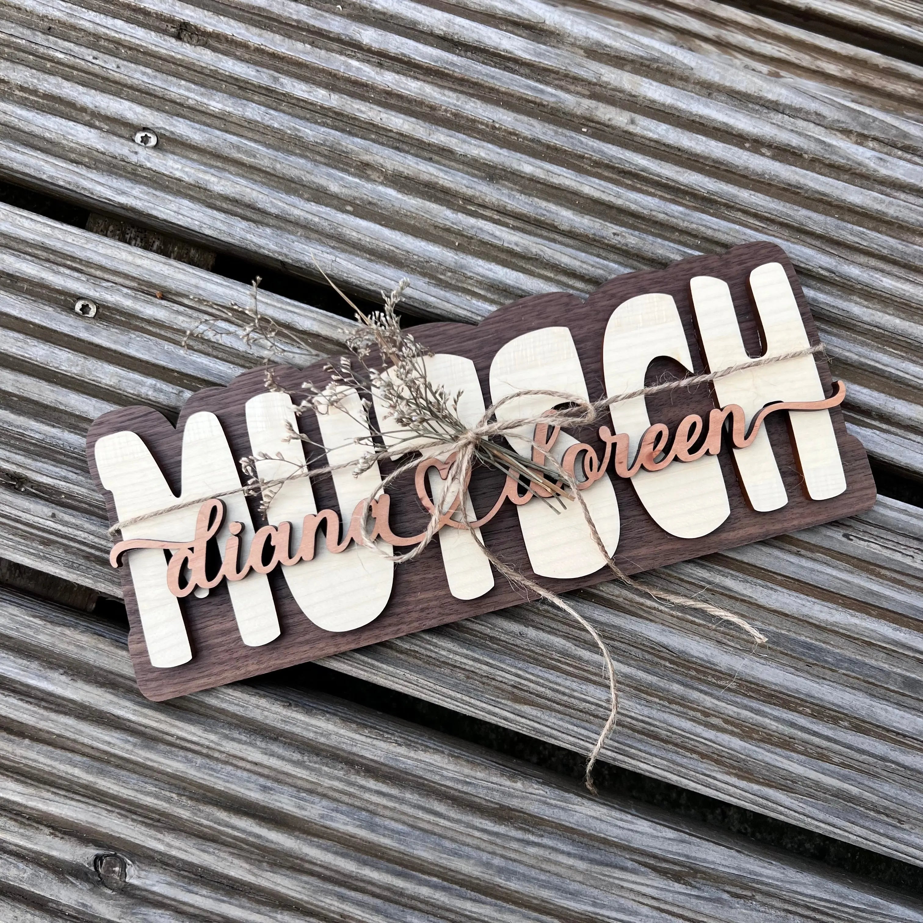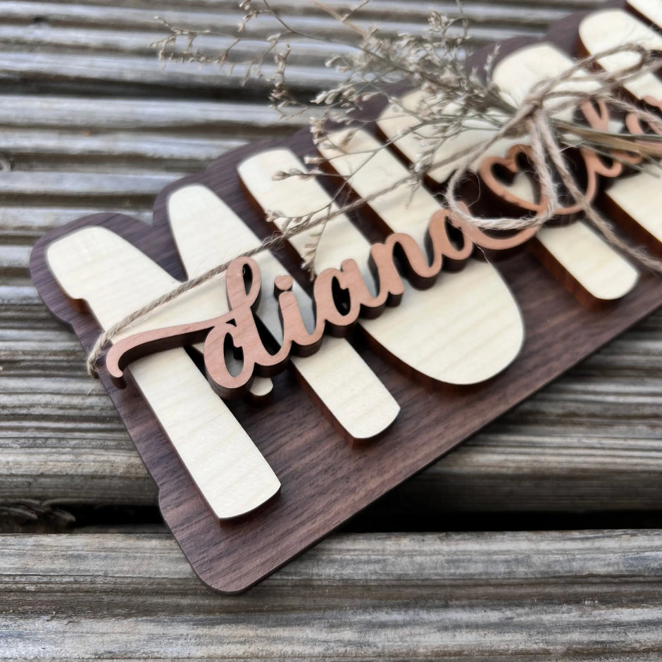 Unser Mama-Schild aus hochwertigen Vollholz, ist ein echtes Highlight und eignet sich ideal als Türschild, Deko-Element oder besonderes Geschenk.